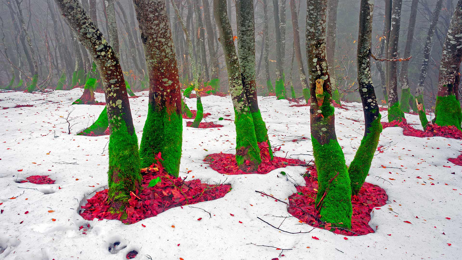 Trees on the northern slope of Mount Khomyak in the Carpathian Mountains, Ukraine (© panaramka/盖蒂图片社)