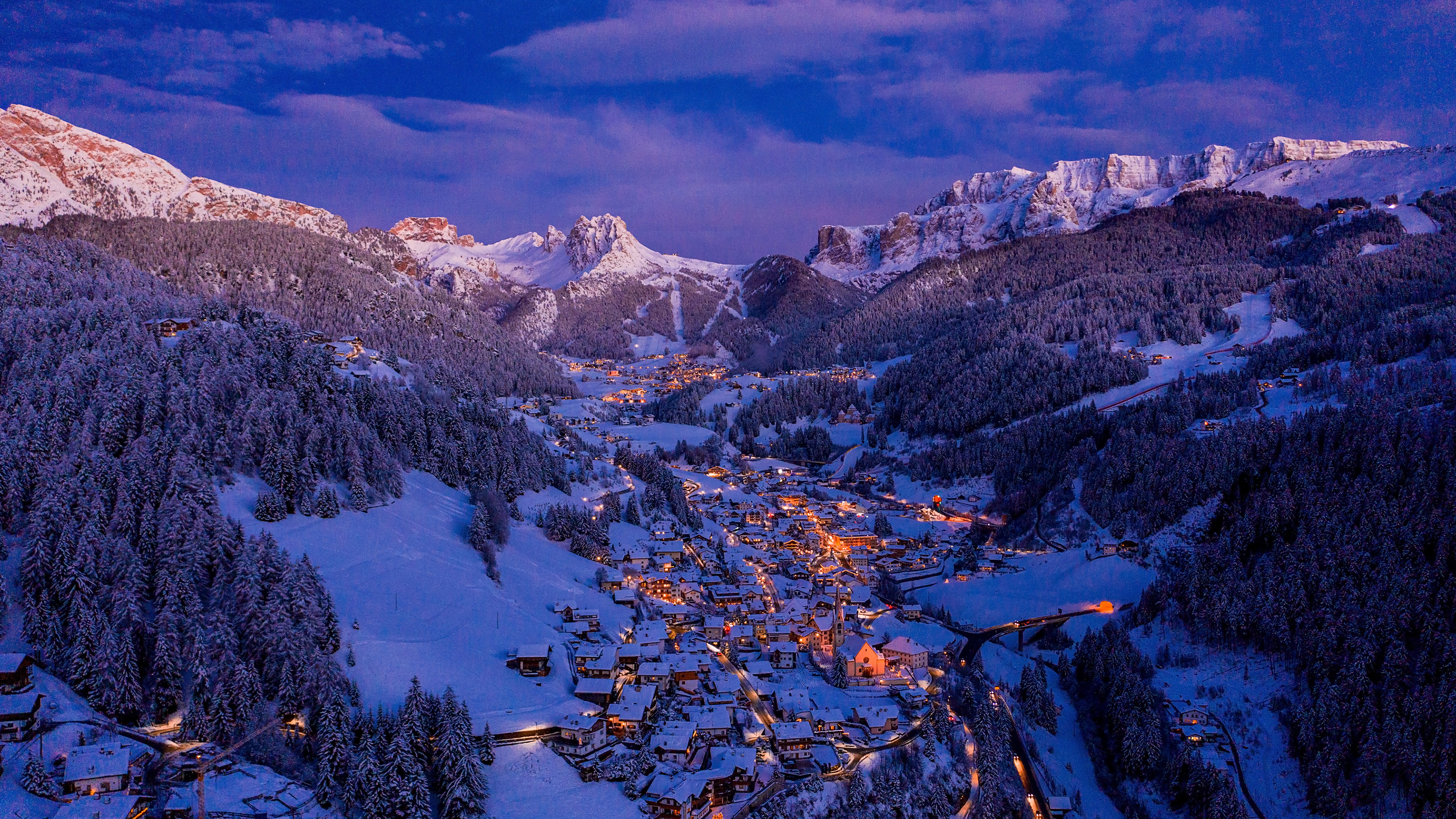 Village in Val Gardena at Christmas, Dolomites, 意大利 (© Ingus Kruklitis/盖蒂图片社)