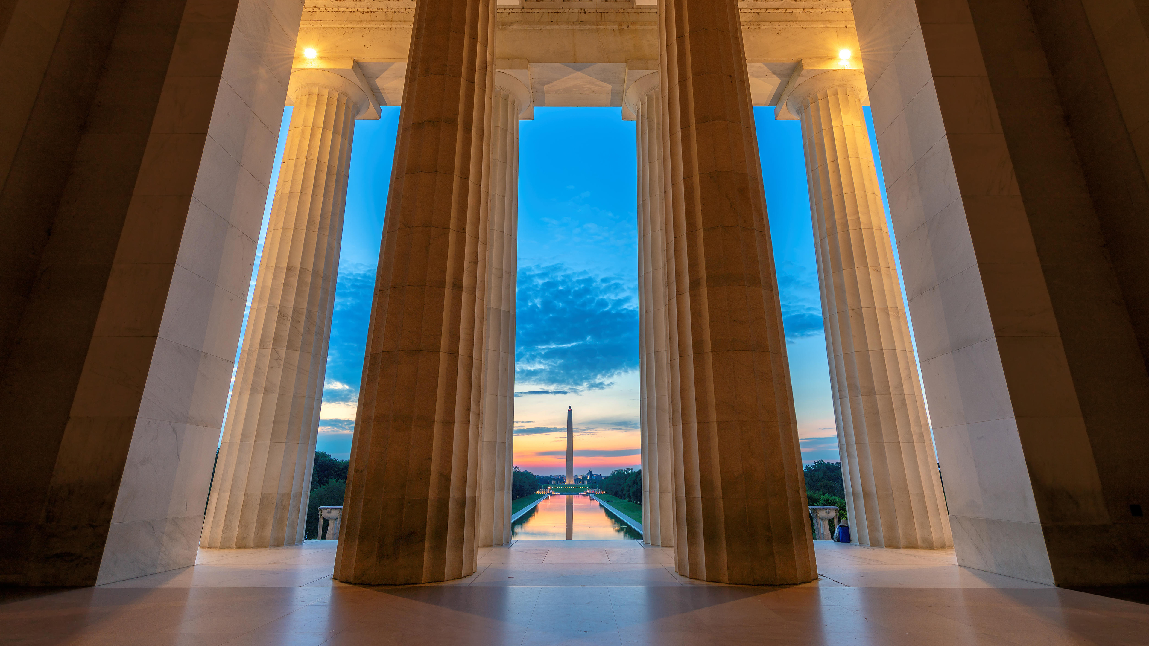The 华盛顿 Monument seen from the 林肯 Memorial, 华盛顿, DC (© lucky-photographer/Alamy)