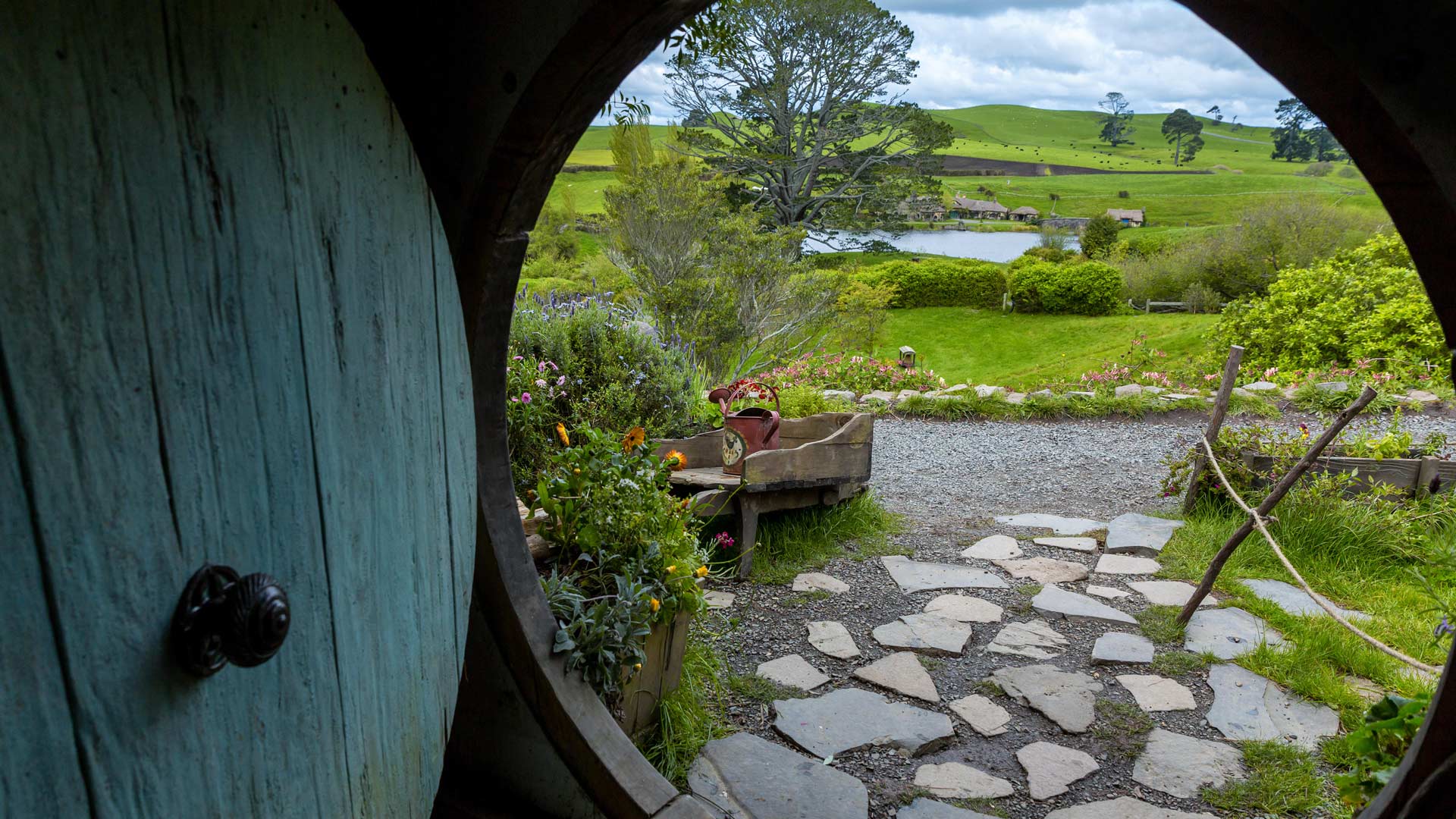 Hobbit-hole in Hobbiton Movie Set, Waikato, 新西兰 (© Kim Petersen/Alamy)